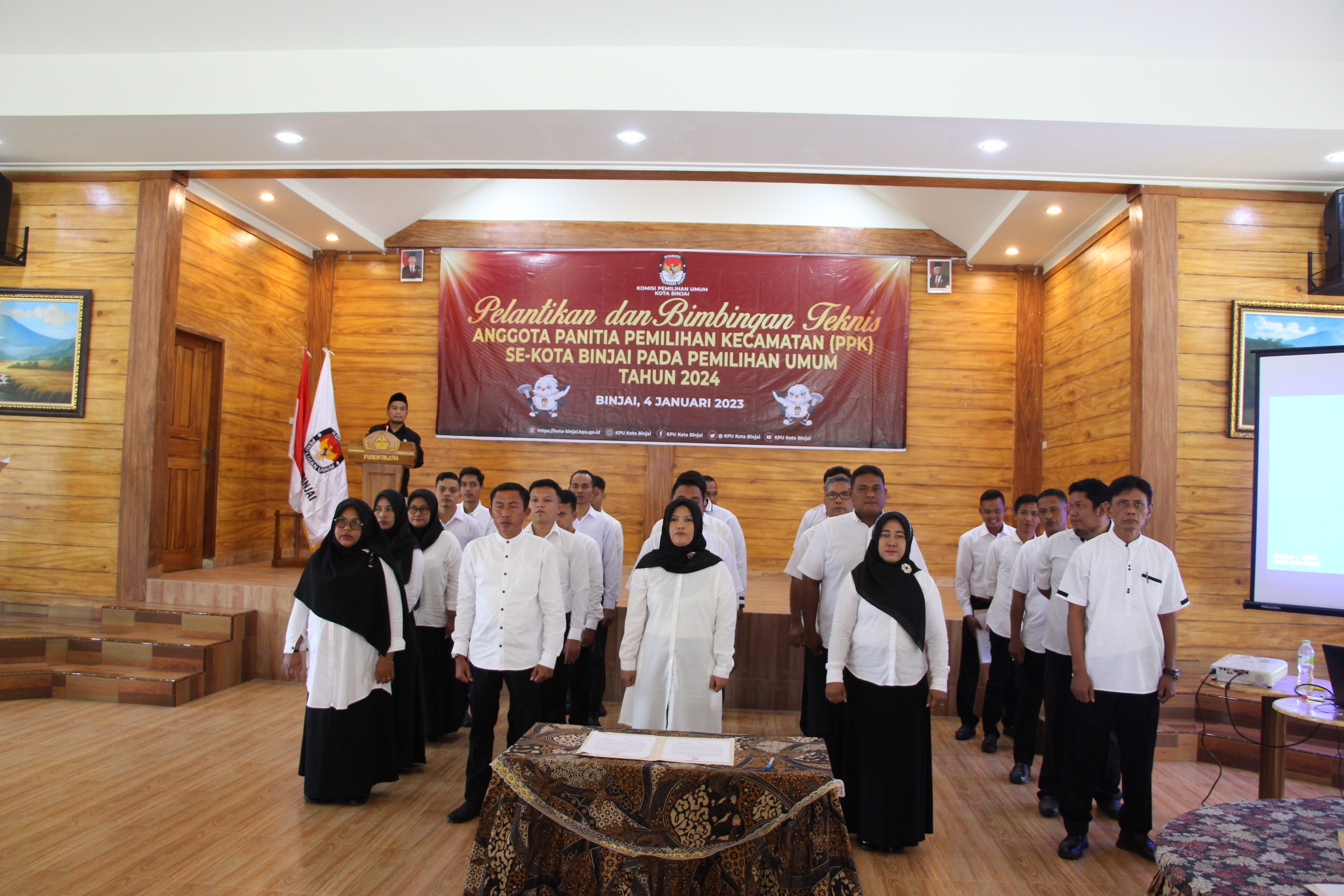 Dikesempatan sama, Anggota KPU Binjai Robby Effendi mengatakan pelantikan ini merupakain rangkaian akhir dari proses seleksi PPK. “Untuk Bimtek PPK akan kita gelar tanggal 5 Januari di Binjai. Sedangkan untuk proses rekrutmen PPS kita akan masuk ke tahap ujian CAT. Sudah kita umumkan yang lolos tahap administrasi selanjutkan akan mengikuti ujian tanggal 6 hingga 8 Januari mendatang,” ucapnya.