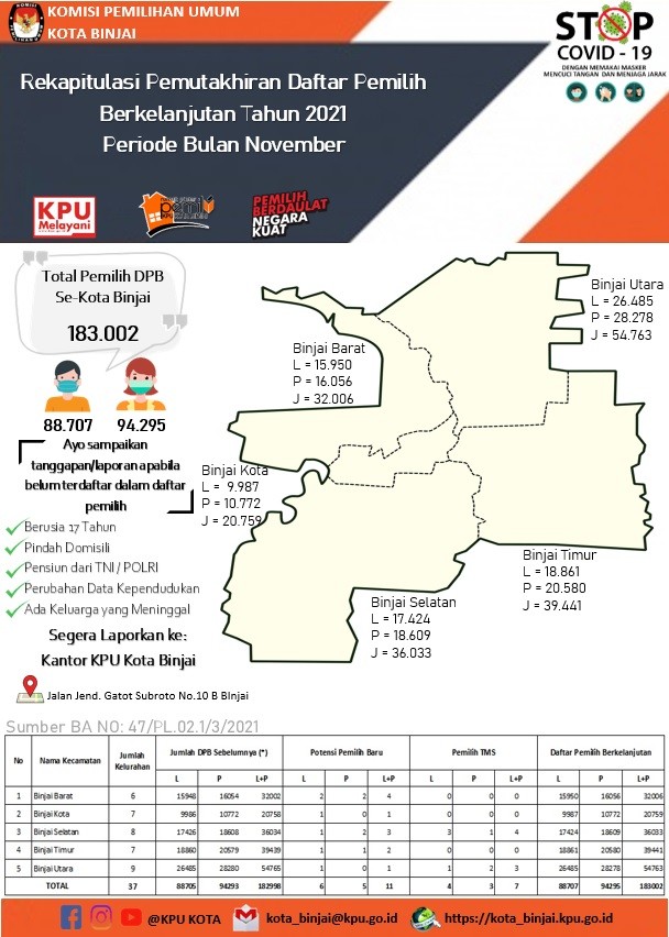 Dari rapat koordinasi ini dapat diketahui adanya perubahan jumlah pemilih di Kota Binjai. Terdapat perubahan pemilih dari 182.998 pemilih di periode Oktober menjadi 183.002 pemilih di periode November.