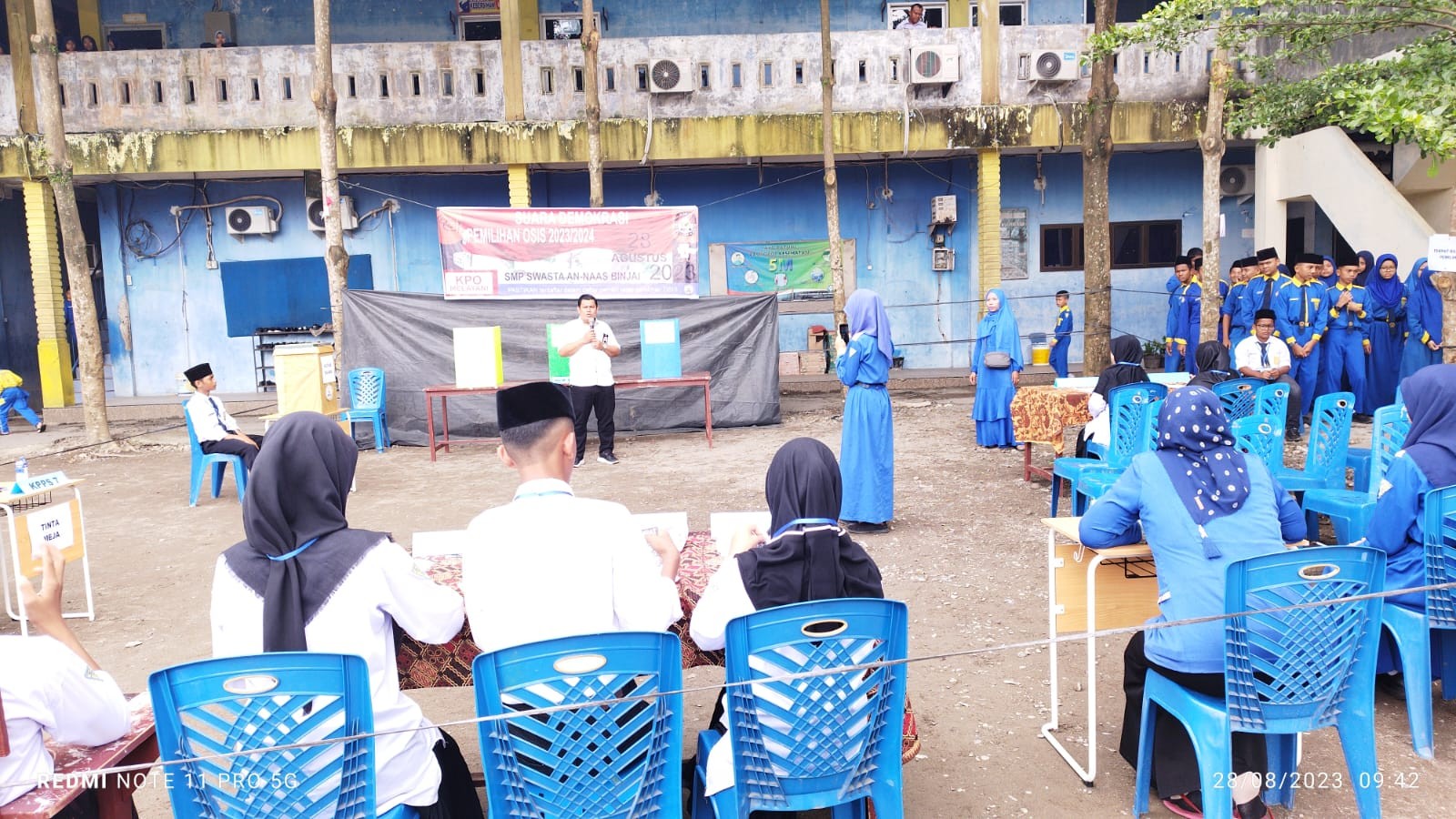 BINJAI, kota-binjai.kpu.go.id - Anggota KPU Kota Binjai Arifin Saleh menghadiri undangan Pemilihan Ketua dan Wakil Ketua OSIS SMK Swasta Esa Prakarsa periode 2023-2024 di Langkat (9/9/2023).