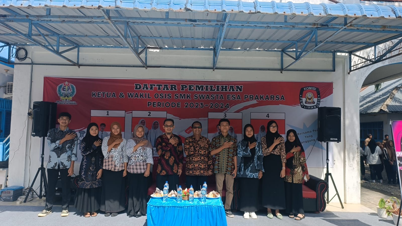 Kegiatan ini diiukti oleh seluruh Siswa-siswi SMK Swasta Esa Prakarsa setiap jurusan. Dalam Pemilihan Ketua dan Wakil Ketua OSIS SMK Swasta Esa Prakarsa periode 2023-2024 SMK Swasta Esa Prakarsa sudah hampir sepenuhnya sesuai dengan penyelengaraan pemilu yang sebenarnya, mulai dari daftar pemilih, papan pengumuman, lokasi TPS hinga pencelupan tinta.