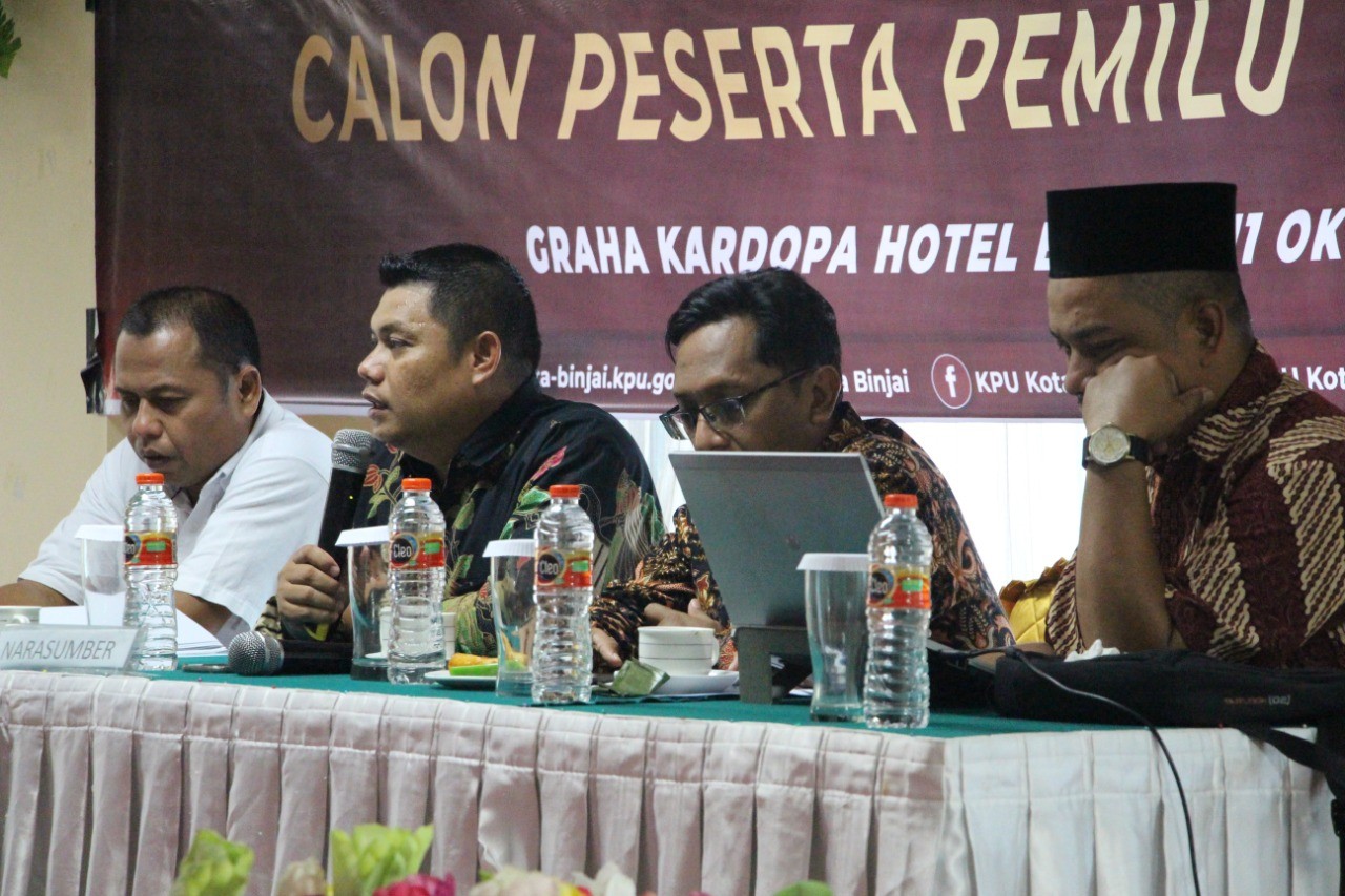 Komisi Pemilihan Umum (KPU) Kota Binjai melakukanSosialisasi kepada Insan Pers dan Media cetak/elektronik, di Cafe Kolam Garden, Jumat (30/9). Turut hadir anggota KPU Binjai Koordinator Divisi Sosialisasi, Pendidikan Pemilih, Partisipasi Masyarakat dan Sumber Daya Manusia (Parmas) Robby Efendy, Anggota KPU Divisi Hukum dan Pengawasan Arifin Saleh, Anggota KPU Binjai Divisi Perencanaan, Data dan Informasi Abdullah Arkam, Kepala Kejaksaan Negeri (Kajari) Binjai Husein Admaja, Kapolres Binjai diwakili Kasat Intelkam AKP Ruswandi, serta puluhan insan pers yang betugas di Kota Binjai. Robby Effendi meminta kepada insan pers media cetak dan elektronik agar dapat bekerja sama dalam mensukseskan agenda pemilu 2024 yang akan datang. Robby berharap pada insan pers semuanya dapat menjadi corong informasi yang baik dan benar kepada masyarakat. AKP Ruswandi mewakili Kapolres Binjai, menyampaikan kesiapan polres Binjai dalam menghadapi pemilu yang akan datang. Dengan cara melakukan pemetaan kerawanan dan potensi konflik Serta Rencana Deteksi Aksi Intelijen sebagai upaya cipta kondisi Menjelang Pelaksanaan Pemilu 2024 di wilayah hukum polres Binjai, dan mengedepankan Babinkantibmas dalam pengawasan di pemilu yang akan datang. Husein menyampaikan sudut pandang Kejari kota Binjai terhadap pemilu di kota Binjai, kita harus mengantisipasi terhadap berita berita yang tidak benar. Kami meminta kepada KPU dapat menambahkan undang undang ITE pada undang undang KPU, pasalnya sering kita dapati berita berita yang tidak benar pasca menjelang pemilu karena kita dapat berkaca pada pemilu yang lalu bangsa kita terpecah akibat berita berita yang tidak benar, dan sering terjadi juga perselisihan di media sosial antara pendukung dengan pendukung lainnya, hingga terjadi pembusukan pembusukan terhadap Paslon yang ikut serta dalam pemilu.