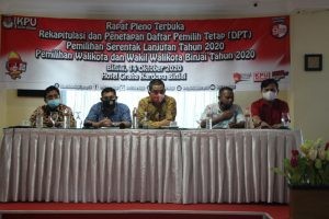 Binjai, kota-binjai.kpu.go.id – Komisi Pemilihan Umum (KPU) Kota Binjai melaksanakan Rapat Pleno Terbuka Rekapitulasi Daftar Pemilih Sementara Hasil Perbaikan (DPSHP) dan Penetapan Daftar Pemilih Tetap (DPT) Tingkat Kota Binjai dalam Pemilihan Walikota dan Wakil Walikota Binjai tahun 2020, pada Rabu, 14 Oktober 2020 pukul: 14.00 Wib s/d Selesai bertempat di Intan Hall Graha Kardopa Hotel Binjai Jl. Sultah Hasanuddin No. 7E Kota Binjai