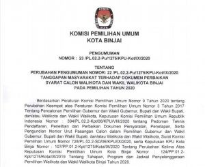 Binjai, kota-binjai.kpu.go.id – Komisi Pemilihan Umum (KPU) Kota Binjai menggelar Sosialisasi Peraturan KPU Nomor: 10 Tahun 2020 tentang Perubahan Atas Peraturan KPU Nomor: 6 Tahun 2020 tentang Pelaksanaan Pemilihan Gubernur dan Wakil Gubernur, Bupati dan Wakil Bupati, dan atau Walikota dan Wakil Walikota Serentak Lanjutan Dalam Kondisi Bencana Non-alam Corona Virus Desiase 2019 (Covid-19), di Pendopo Umar Baki, Jumat (18/09/2020)