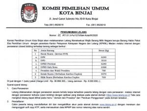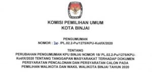 Binjai, kota-binjai.kpu.go.id – Komisi Pemilihan Umum (KPU) Kota Binjai menerima 2 berkas pendaftaran Bakal Pasangan Calon Walikota dan Wakil Walikota Binjai Tahun 2020, pada hari pertama masa pendaftaran Calon Walikota dan Wakil Walikota Binjai Pemilihan Serentak Tahun 2020.
