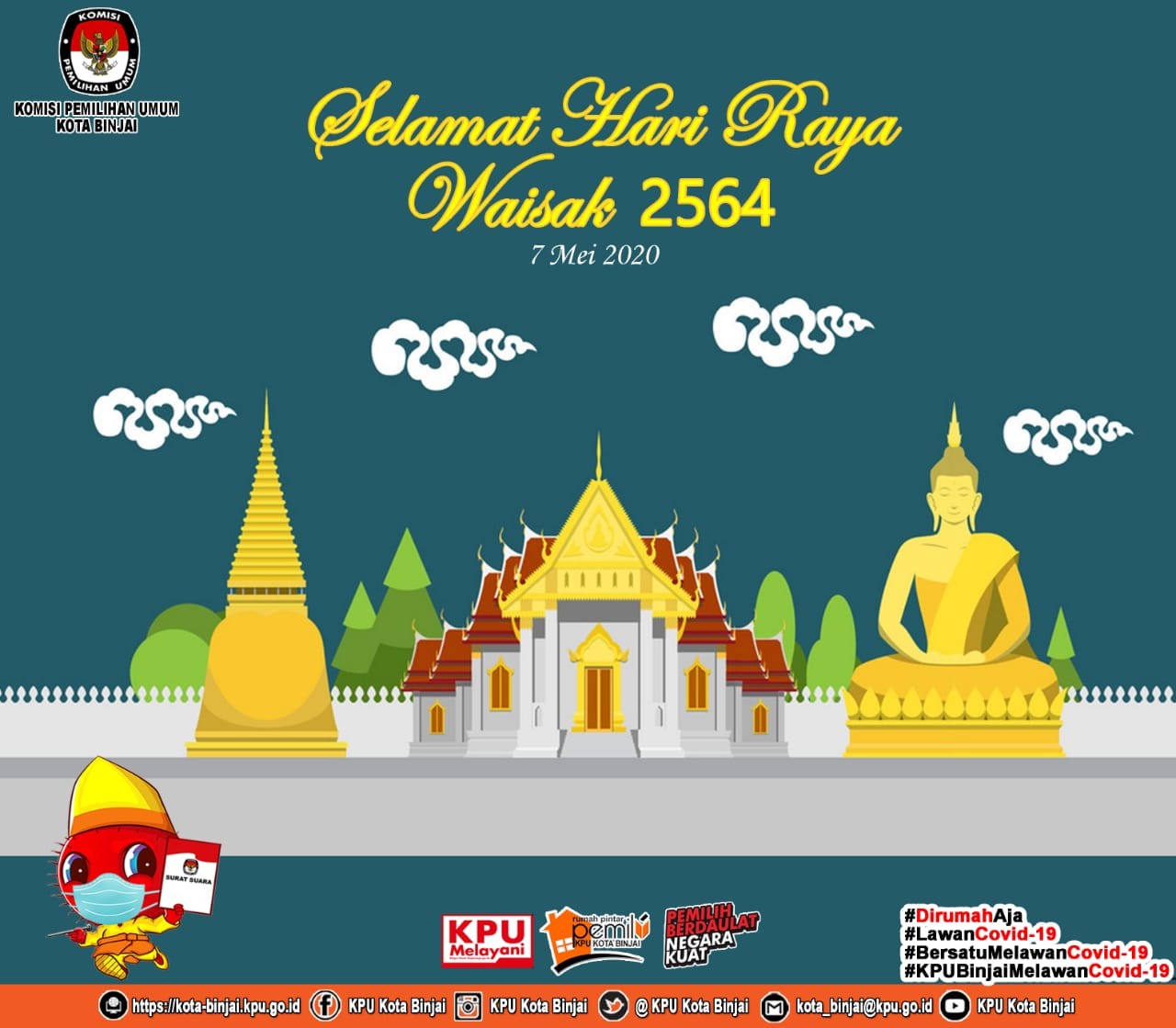 Seluruh jajaran Komisi Pemilihan Umum (KPU) Kota Binjai berdoa semoga pendemi covid 19 berakhir hingga bisa bekerja seperti biasanya dan semoga semakin sejahtera bagi seluruh buruh di Indonesia.