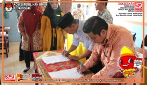 Binjai, kota-binjai.kpu.go.id – Jum'at, 24 Januari 2020 Komisi Pemilihan Umum (KPU) Kota Binjai telah melakakukan Penandatanganan Nota kesepakatan bersama antara SMK panca abdi bangsa Kota Binjai dengan KPU Kota Binjai tentang pelaksanaan tes tertulis Computer Assested Test (CAT) calon anggota PPK dan PPS pada Pemilihan Walikota dan Wakil Walikota Binjai Tahun 2020. Kegiatan ini Bertempat di salah satu Ruangan SMK panca abdi bangsa Kota Binjai .