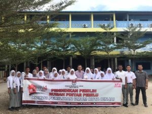 Binjai, kota-binjai.kpu.go.id – Kamis, 28 November 2019 Rumah Pintar Komisi Pemilihan Umum (KPU) Kota Binjai melakukan pendidikan pemilih kepemiluan kepada Yayasan Pendidikan SMA PABA Binjai. Kegiatan Pendidikan Pemilih Kepemiluan ini dihadiri oleh Koordinator Divisi Pendidikan Pemilih, Parmas dan SDM Robby Effendi, Koordinator Divisi Perencanaan Data dan Informasi Abdulah Arkam, Kasubbag Perencanaan Data dan Informasi Suwandi dan Tim sekretariat KPU Kota Binjai. Tujuan Pendidikan Pemilih ialah untuk memberikan pendidikan demokrasi, kepemiluan, dan fungsi rumah pintar pemilu kepada masyarakat Kota Binjai.