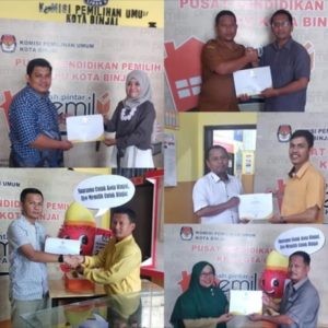 Peluncuran itu ditandai dengan pencoblosan tanda gambar secara simbolis oleh Walikota Binjai, HM Idaham, Ketua KPU Sumut Hardensi Adenin dan Ketua KPU Binjai Zulfan Effendi. Sekaligus diumumkannya pemenang sayembara Maskot dan Jingle untuk pemilihan tahun 2020. Hadir Anggota KPU Binjai Risno Fiardi, Arifin Saleh, Abdulah Arkam dan Robby Effendi.