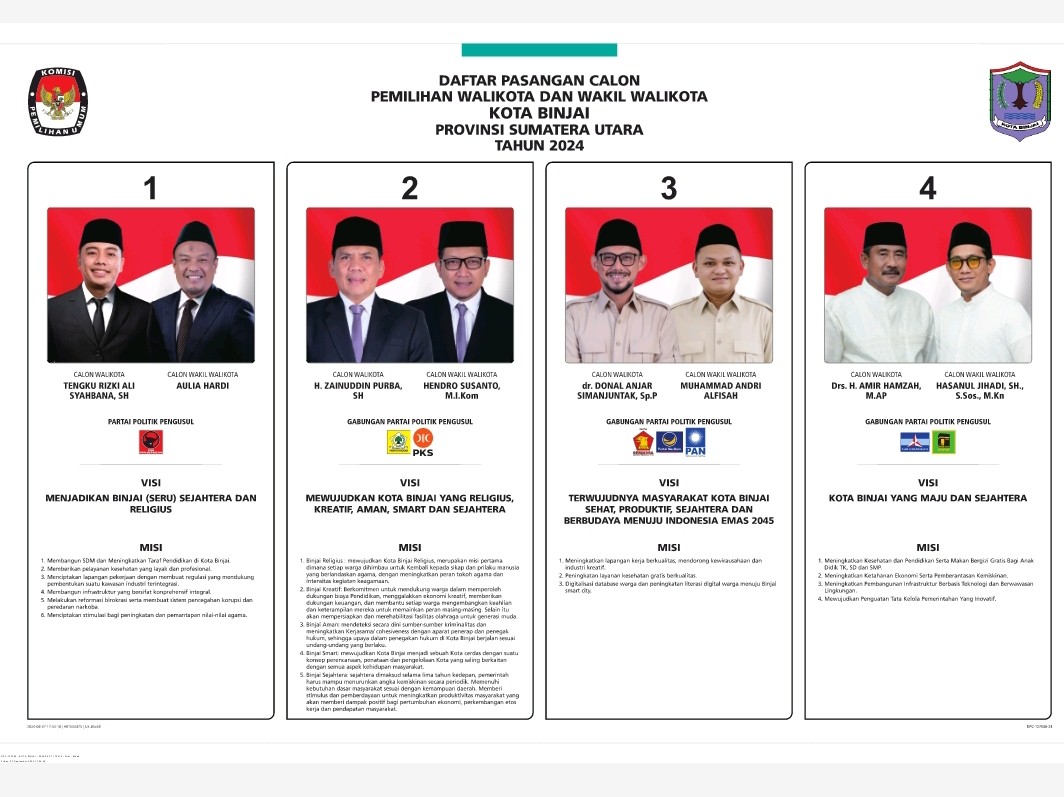 PENGUMUMAN NOMOR : 800/PL.02.4-Pu/1275/2024 TENTANG HASIL PENERIMAAN LAPORAN PENERIMAAN SUMBANGAN DANA KAMPANYE PEMILIHAN WALIKOTA DAN WAKIL WALIKOTA BINJAI TAHUN 2024.