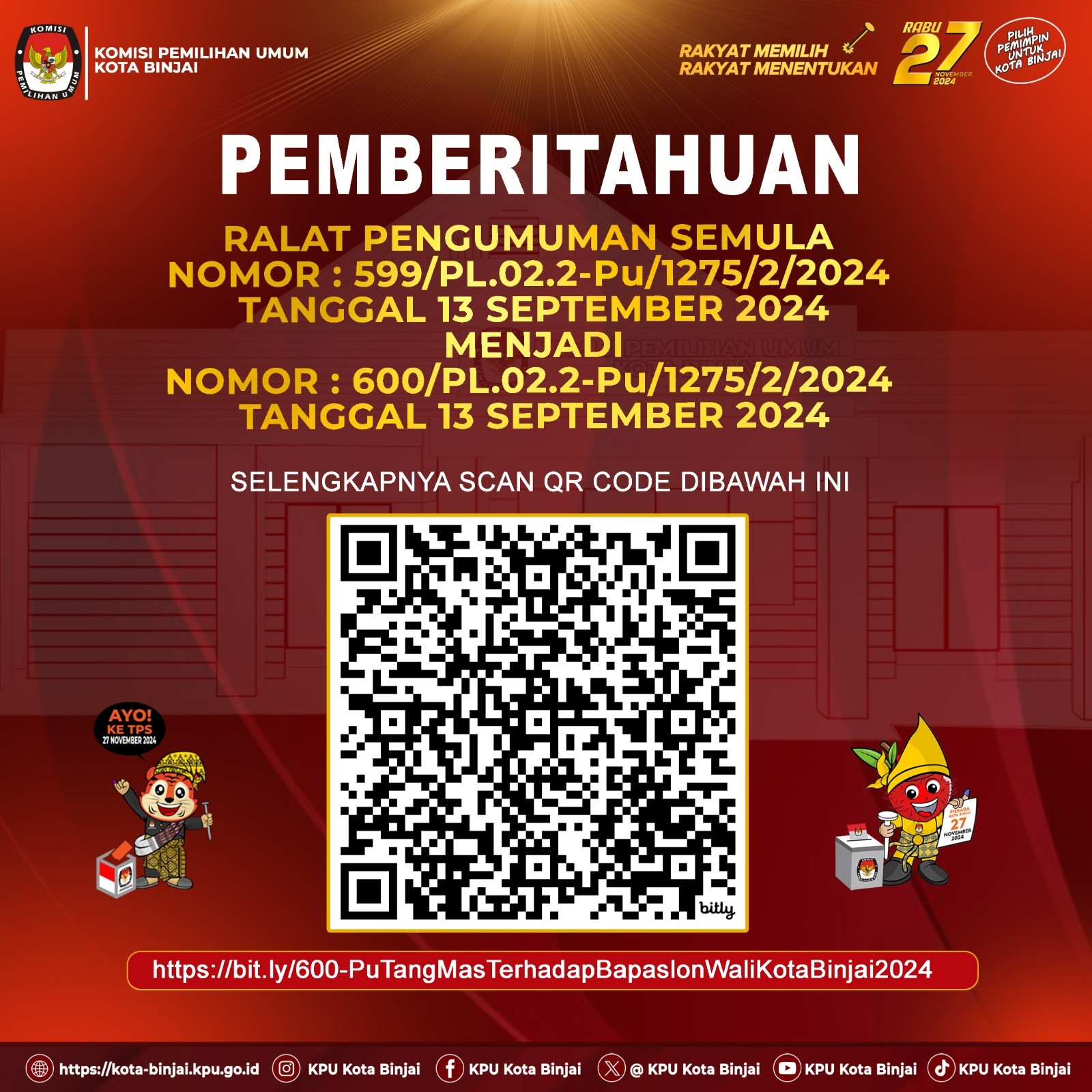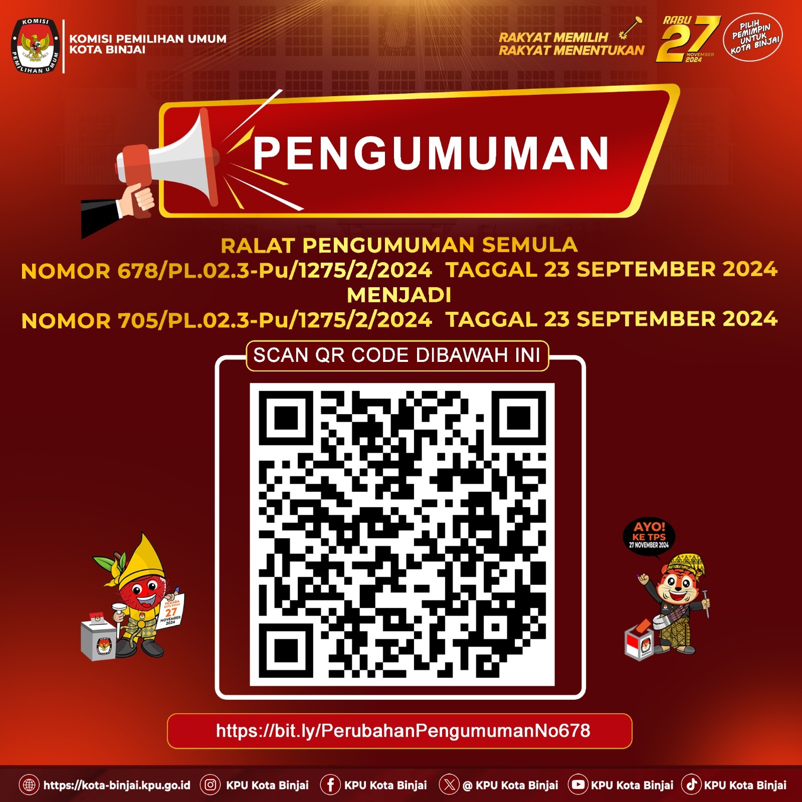RALAT SEMULA NOMOR : 678/PL.02.3-Pu/1275/2/2024 TANGGAL 23 SEPTEMBER 2024 MENJADI NOMOR : 705/PL.02.3-Pu/1275/2/2024 TENTANG PENETAPAN NOMOR URUT PASANGAN CALON PESERTA PEMILIHAN WALI KOTA DAN WAKIL WALI KOTA BINJAI TAHUN 2024