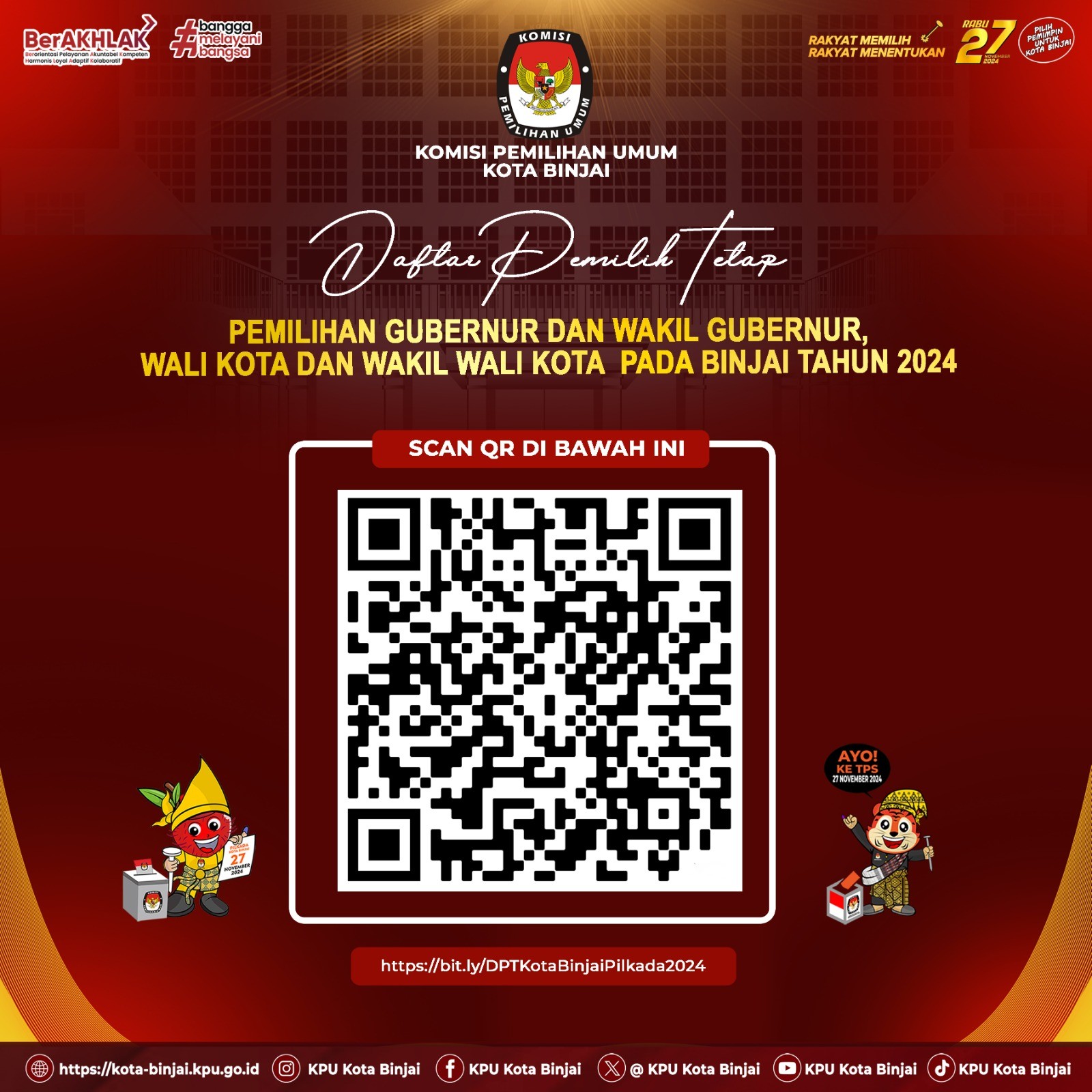 PENGUMUMAN DAFTAR PEMILIH TETAP PEMILIHAN GUBERNUR DAN WAKIL GUBERNUR, WALI KOTA DAN WAKIL WALI KOTA BINJAI TAHUN 2024.