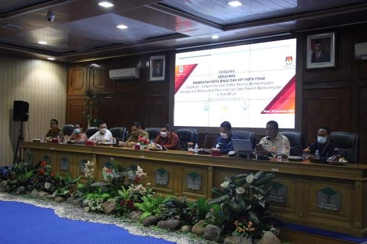 KPU Kota Binjai melaksanakan Sosialisasi Aplikasi Sidarlih (Sistem Informasi Daftar Pemilih) kepada Camat, Lurah dan operator kelurahan se-Kota Binjai di Aula Pemerintah Kota Binjai, Selasa (28/12/2021).
